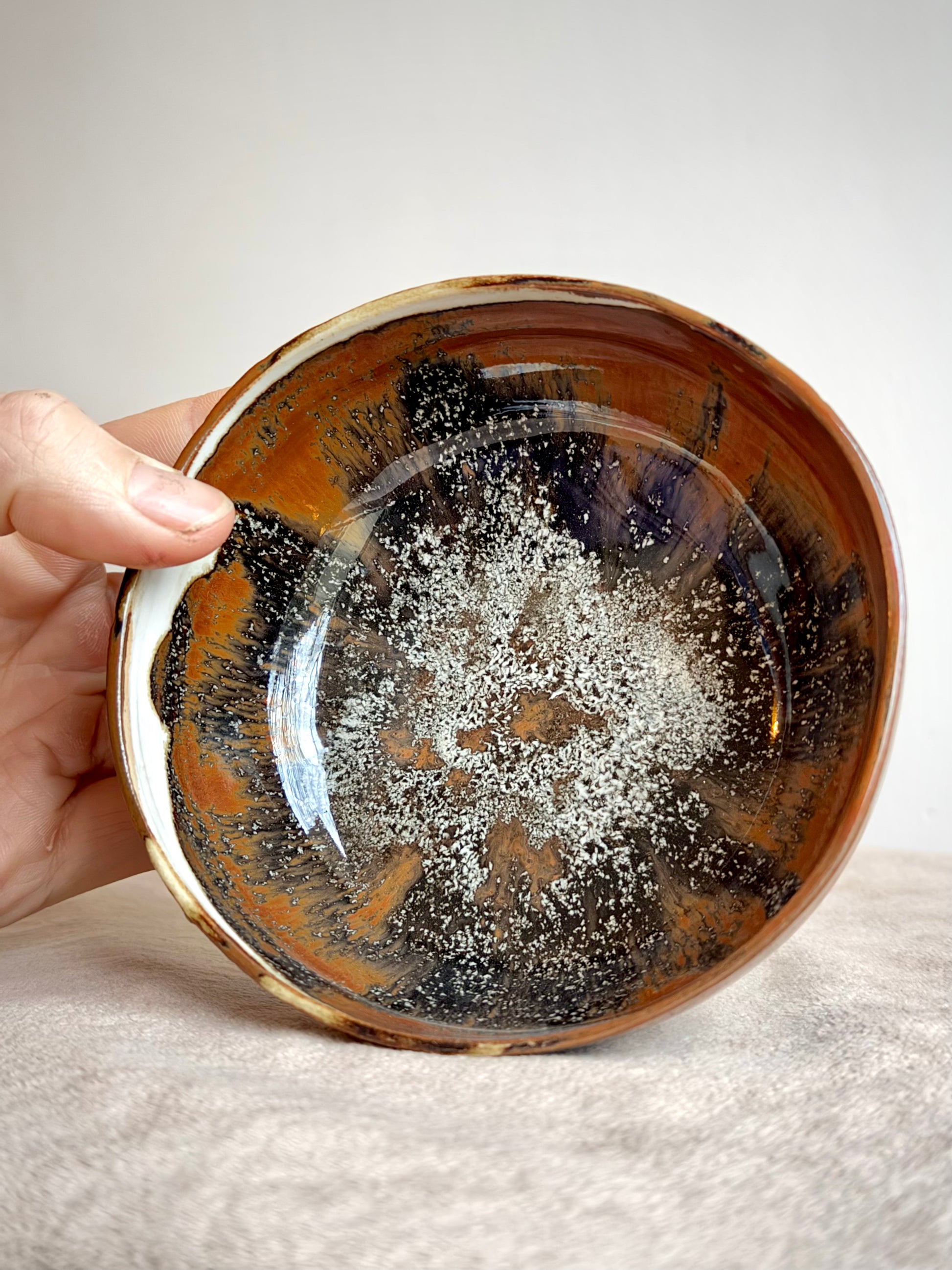 Een schaaltje met als inspiratie de kleuren van de bomen. Simpel van vorm, maar bijzonder qua kleurverloop. Leuk om op tijdens de borrel op tafel te zetten, of om mooie edelstenen in te doen. Diameter binnenkant 10.5 cm.